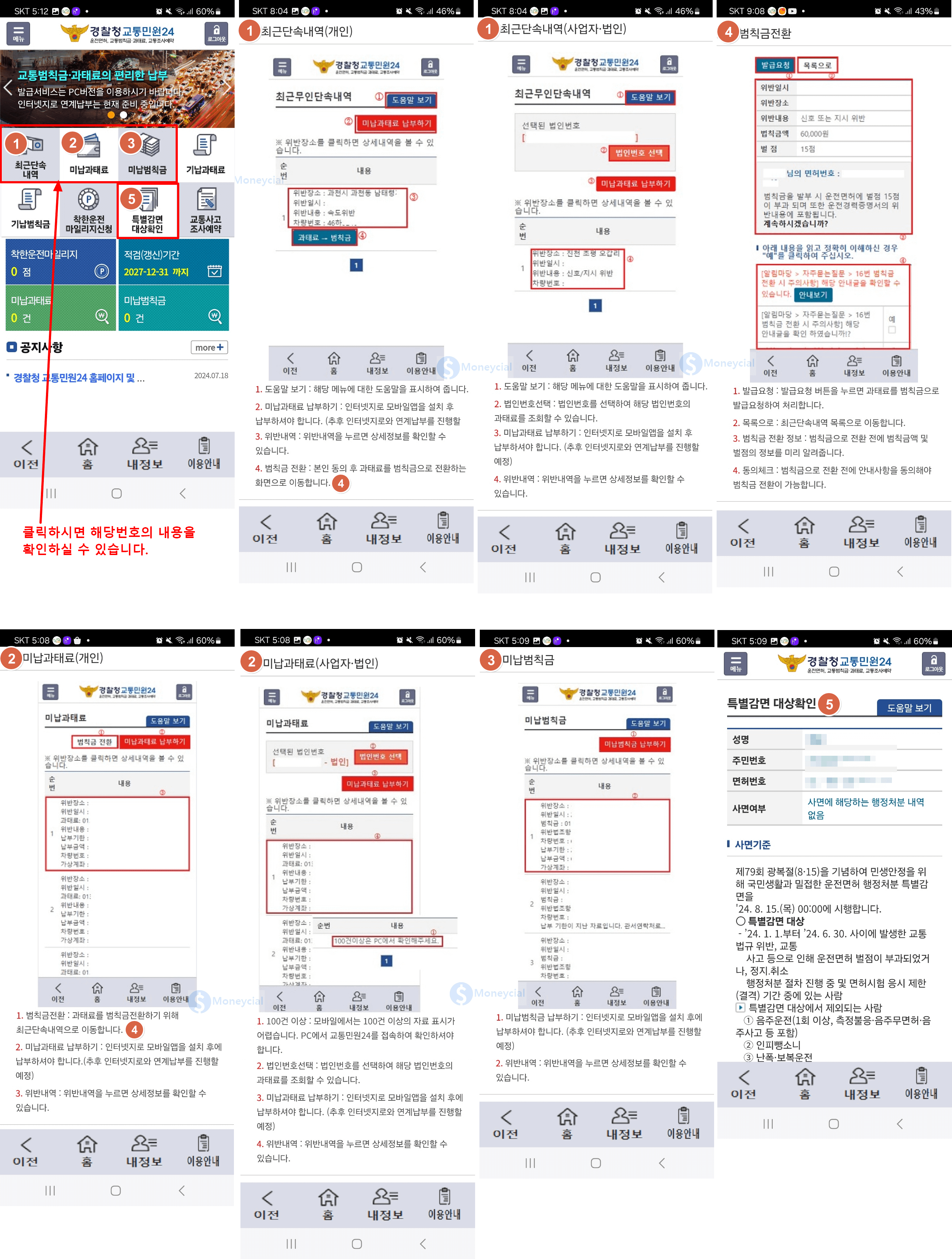 ④ 법인의 과태료는 경찰서 교통민원실로 방문해야 범칙금 전환이 가능합니다.