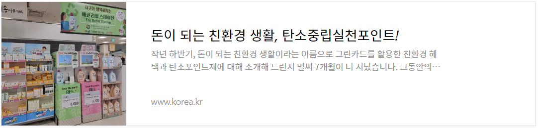 환경부 주관으로 시행하는 무료 '그린카드'로 그린매장에서 친환경 제품 구매하고 최대15%까지 에코머니 포인트 현금 받으세요.